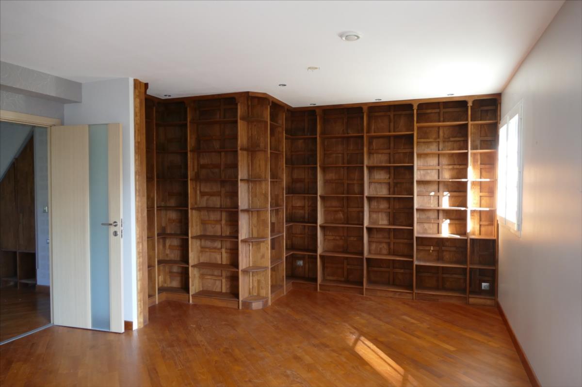 Au premier étage sols en TECK Massif, côté SUD une suite parentale (dressing, salle d'eau  en marbre avec double vasque et son balcon) et une bibliothèque /salon (balcon) . Côté NORD, une chambre et un auditorium donnant accès au grenier. Une salle d'eau et un WC.