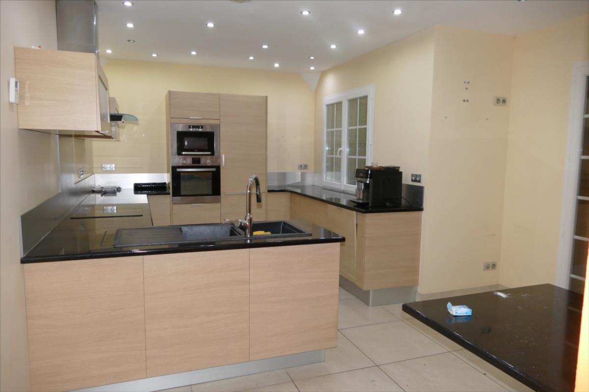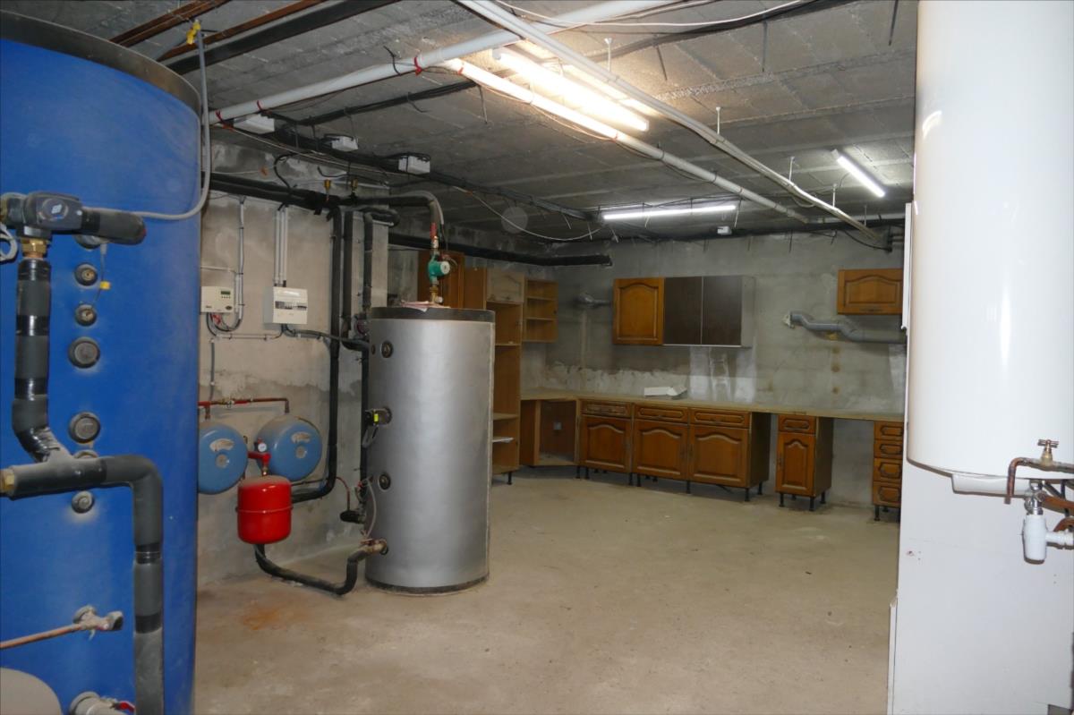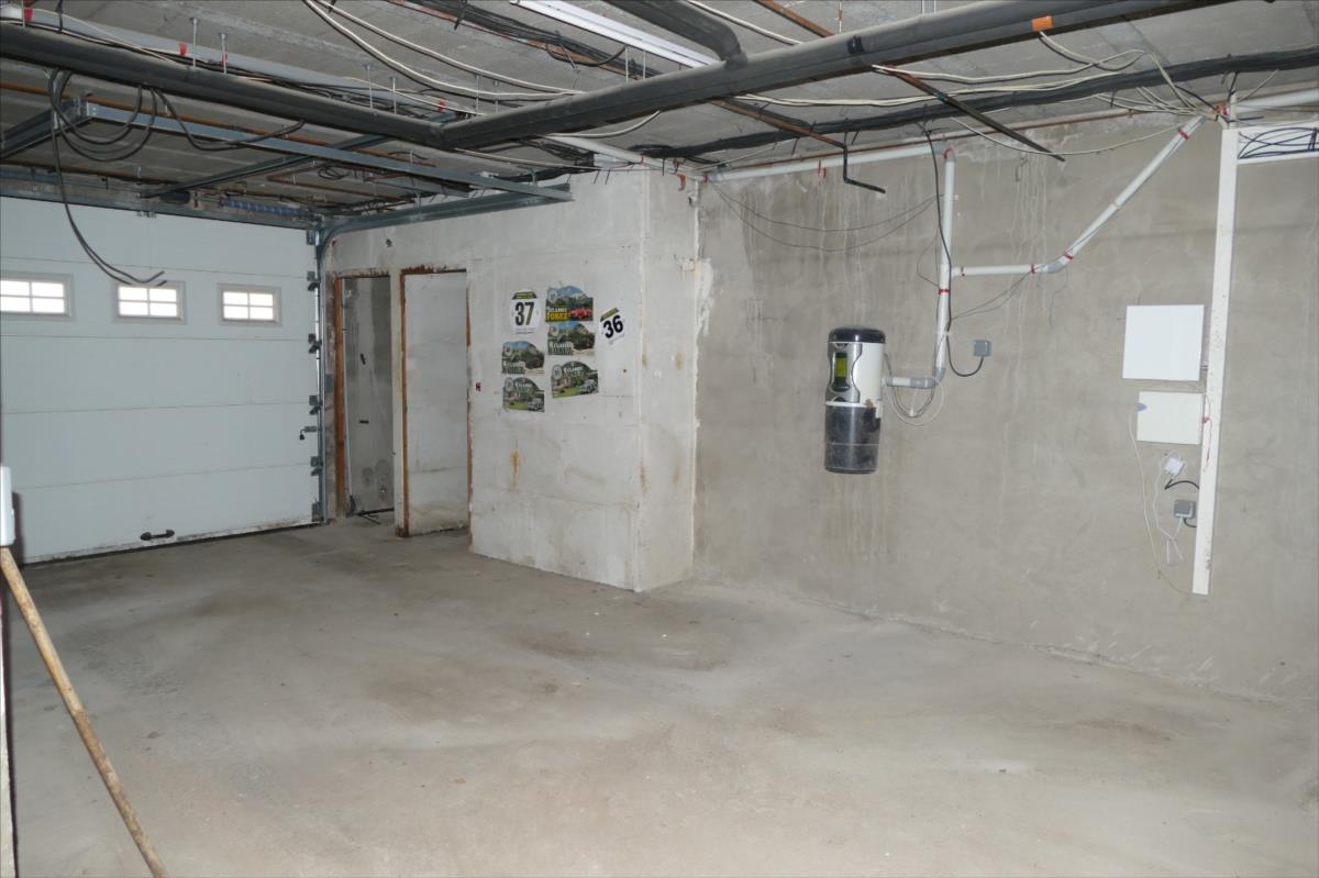 Complètement élevée sur sous-sol composé de trois garages avec portes sectionnelles motorisées, une cave et l'atelier avec l'espace chaufferie.